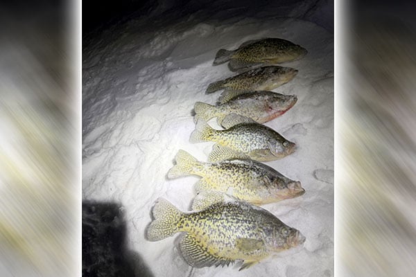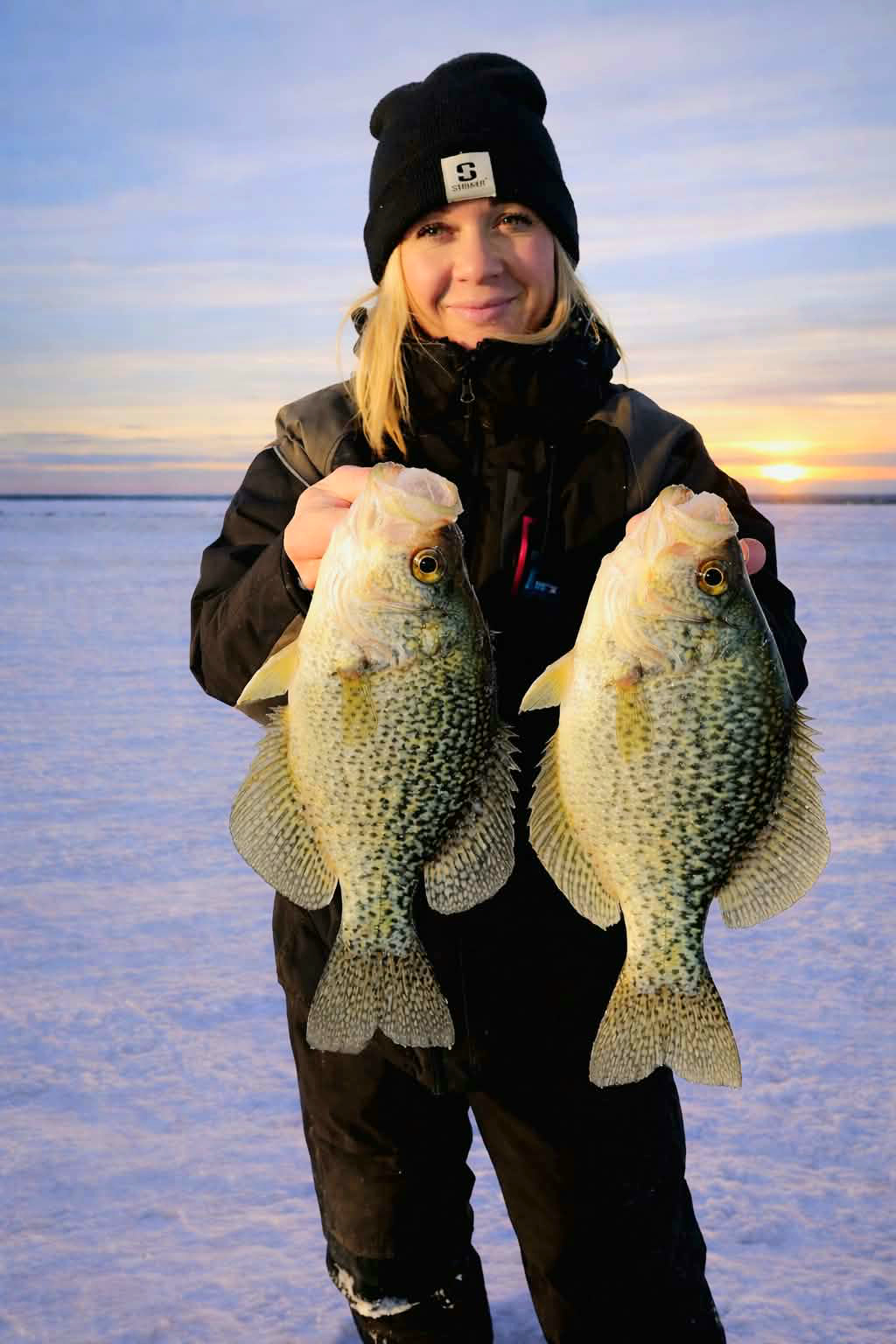 Lisa Dorle, of St. Michael, MN caught these 15-inch crappies while fishing with a VMC Tingler Spoon in Beltrami County on Feb. 1, 2026.