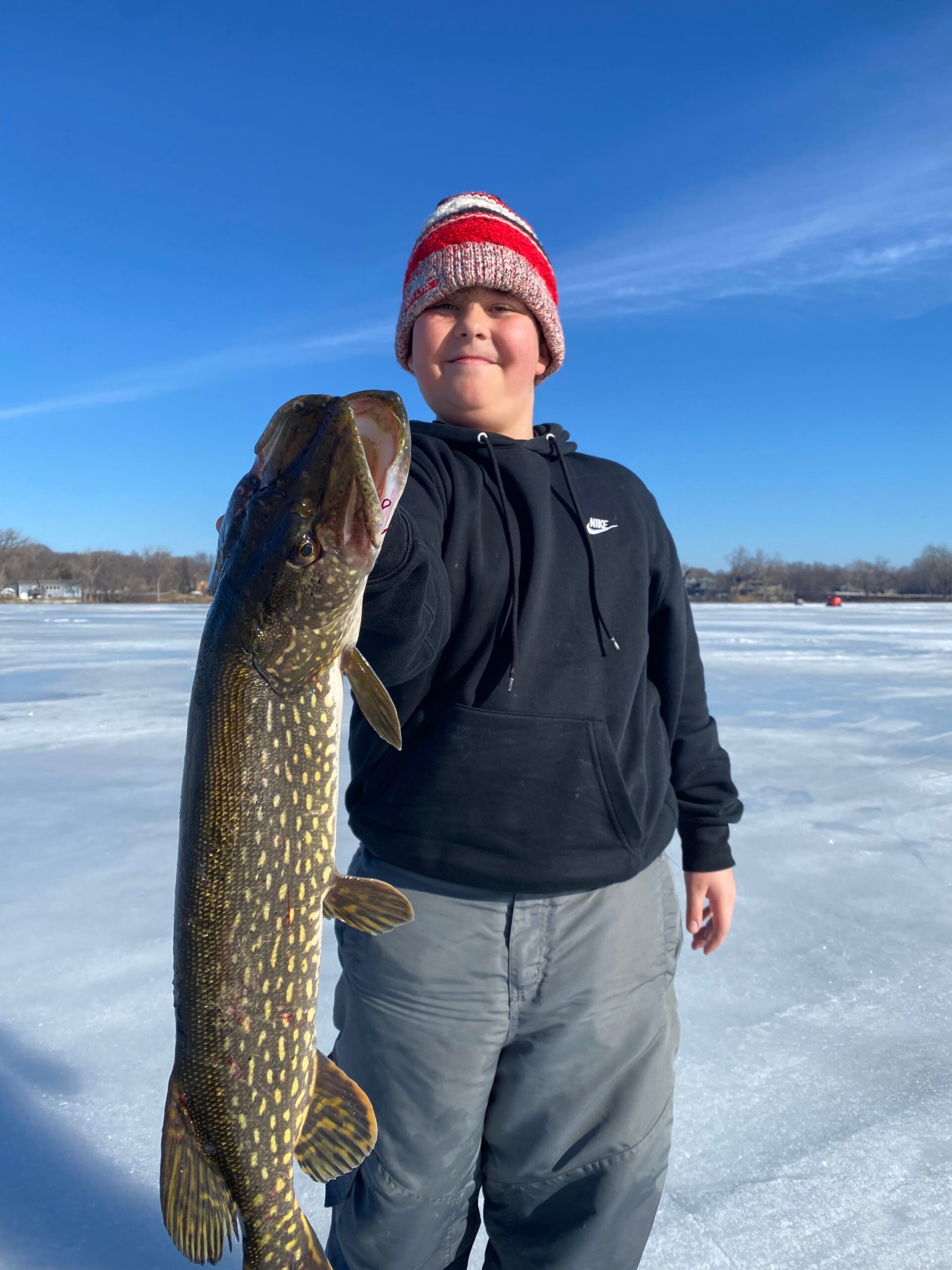 Crosby Camp, 10, of Rosemounty, MN caught and released this 30-inch northern, his personal best, while fishing in Dakota County on Feb. 15, 2026.