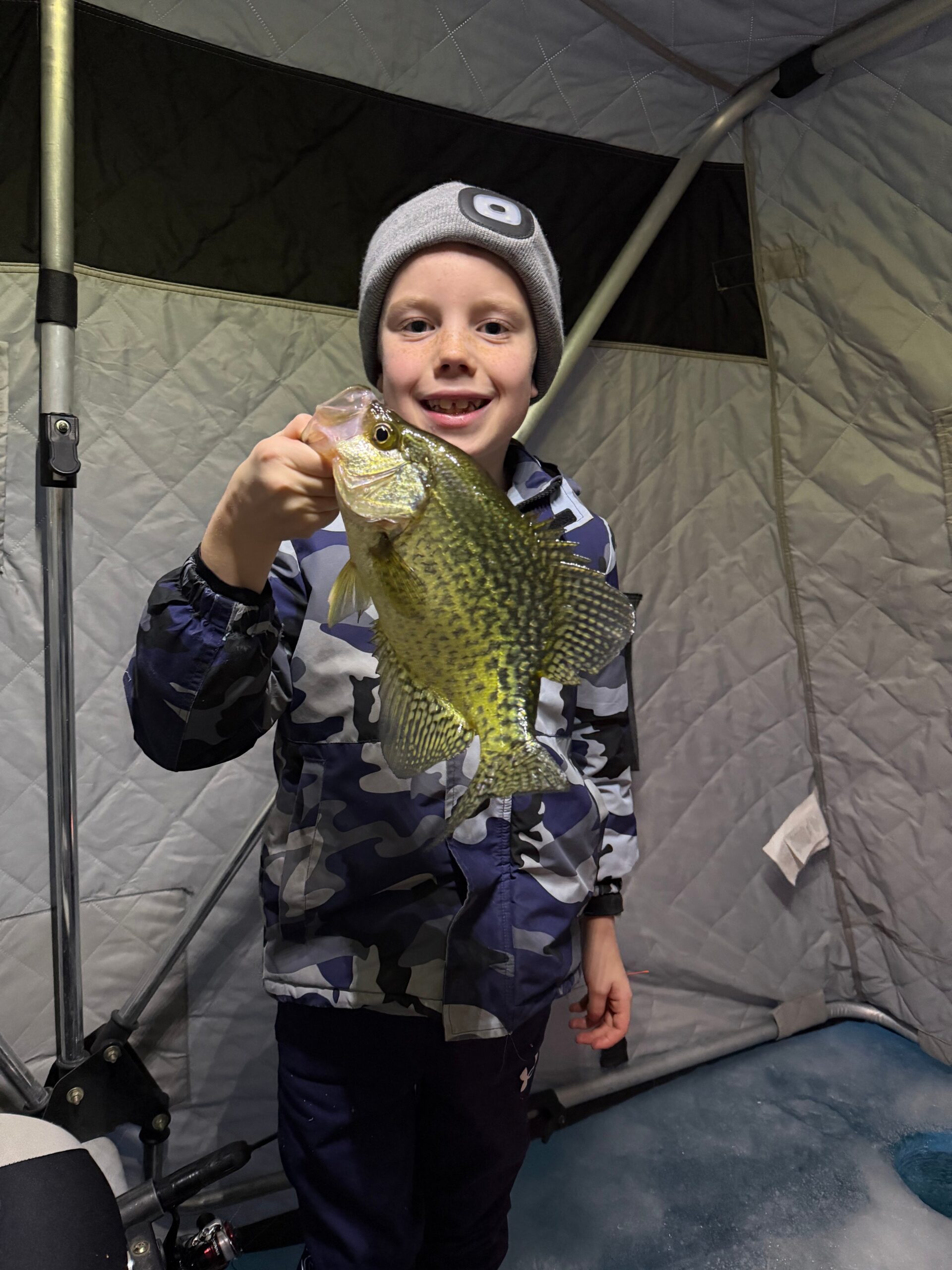 Colton Anderson, of Belview, MN caught this 12-inch crappie, while fishing on Diamond Lake Feb. 1, 2026.
