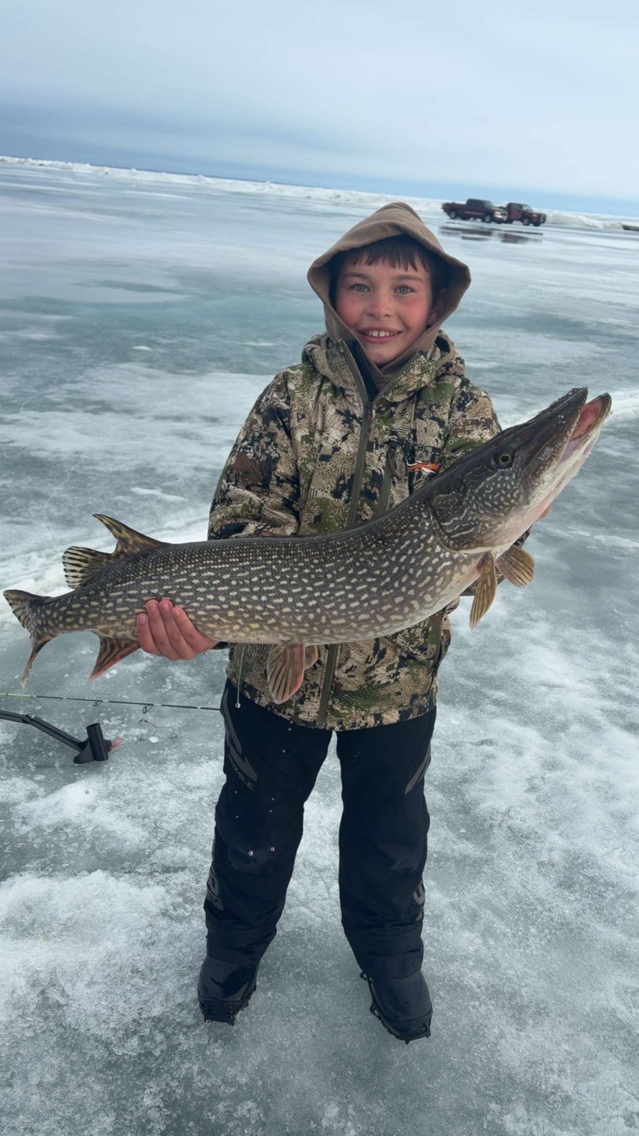 Merrick Jackson, of Grand Rapids, MN caught and released this 35-inch northern while tip-up fishing on Lake of the Woods with his dad, Mike on March 21, 2026.