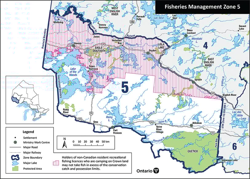 Elsewhere in zone 5, most regulations remain unchanged. For information from zone 5 and other fishing zones in Ontario (including zone 6, the location of popular Lac Seul), visit here.