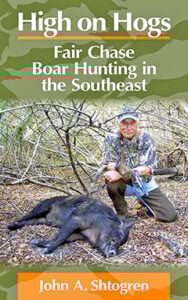 High on Hogs: Fair Chase Boar Hunting in the Southeast, self-published, 140 pages, Get it for $18 autographed and personalized direct from author: jashtogren@yahoo.com.