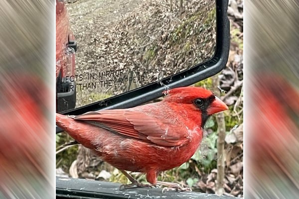 When Tim King and family visit their cabin in the springtime, they have to remember to put a bag over their parked vehicle’s rearview mirror. The reason: It’s mating season in the bird world, and cardinals (and robins) are very prone to attack mirrors or windows on vehicles or homes if they see their own reflection.