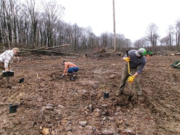 In addition, the crew also planted three other areas to be fenced, and set stakes that will be used to hang fence by the Game Commission. Blueberries were planted in individual circular cribs built around the blueberries.